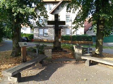 An dieser Stelle stand von 1666 - 1939 die alte Kapelle, die 1911 durch die St. Martinuskirche ersetzt wurde. Ihr Grundriss ist durch Steinplatten makiert. Das Heimkehrerkreuz wurde 1955 feierlich eingeweiht.